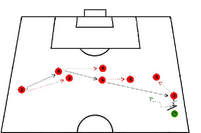 6 que hace la cobertura, pasa el balón rápidamente para la llegada del